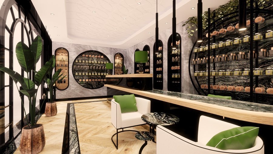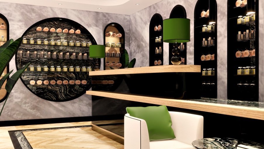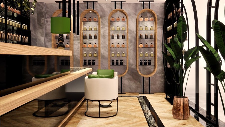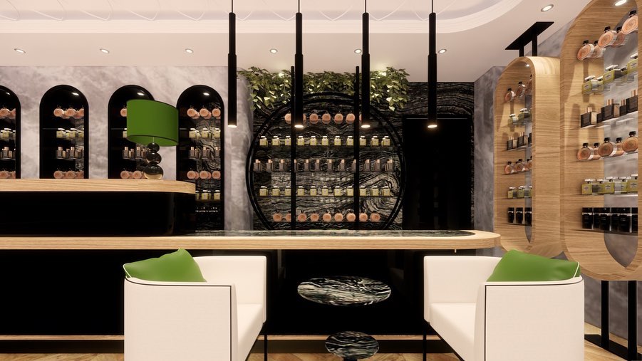 Muscent parfüm mağazasının Sakarya'da bulunan yerinin ahşap tasarım banko, raf ve duvar ahşap montajı yapılmıştır.