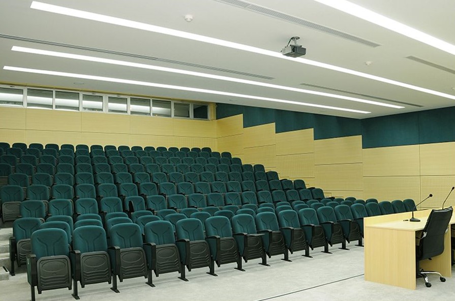 Sakarya Üniversitesi bünyesindeki Kongre Salonu'nun duvar, tavan ve yayın odası ahşap montajı yapılıştır.